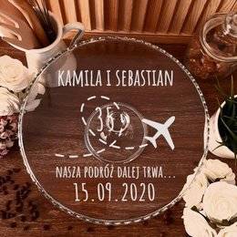 Patera szklana na nóżce z grawerem Rocznica Ślubu - podróż
