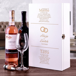 Białe pudełko na dwa wina z grawerem - podziękowania dla rodziców