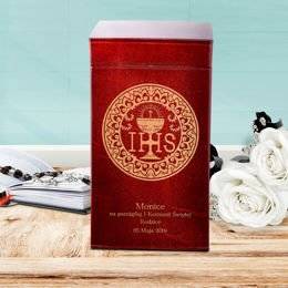 Drewniane pudełko prezentowe - Pamiątka Pierwszej Komunii Św - Kielich