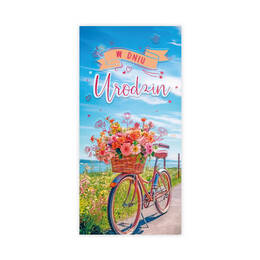 Kartka z okazji urodzin - Rower z koszem kwiatów
