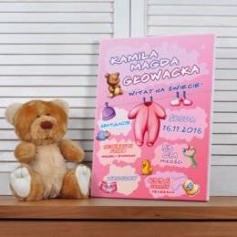 Metryczka dla dziewczynki- obraz na płótnie