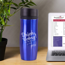 Kubek termiczny niebieski - Dzień dobry i nie waż mi się go zepsuć