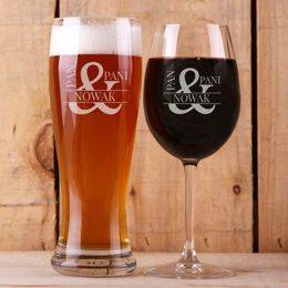 Kieliszek do wina i szklanka do piwa - Pan i Pani