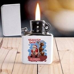 Biała zapalniczka benzynowa w pudełku Wesołych Świąt