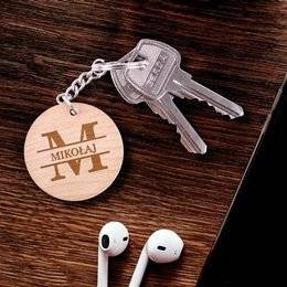Dwa okrągłe breloki z drewna dla doskonałego małżeństwa