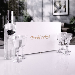 Zestaw sześciu kieliszków do wódki w pudełku drewnianym z Twoim tekstem