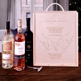 Zestaw pudełko z kieliszkami i miejscem na wino - historia miłosna