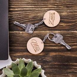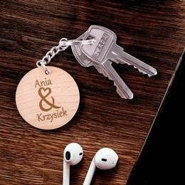 Okrągły brelok drewniany z imionami pary