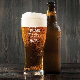 Szklanka / pokal do piwa z grawerem Jeszcze kozak wkrótce pantofel + imię – prezent kawalerski