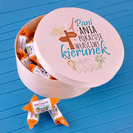 Drewniane pudełko z krówkami dla nauczyciela chemii