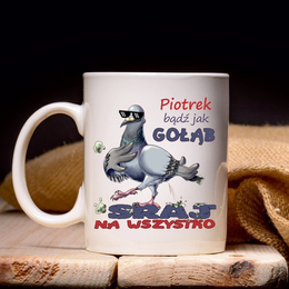 Kubek "Bądź jak gołąb, sraj na wszystko"
