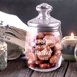 Kubek / Słoik z uszkiem i nakrętką z grawerunkiem laserowym - Monogram