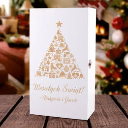 Białe pudełko na dwa wina z grawerem z okazji Świąt Bożego Narodzenia