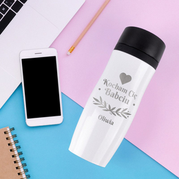 Kubek / Słoik z uszkiem i nakrętką z grawerunkiem laserowym - Monogram
